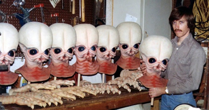 Художник-концептуалист и создатель спецэффектов Джо Джонстон с моделями звездных истребителей.
