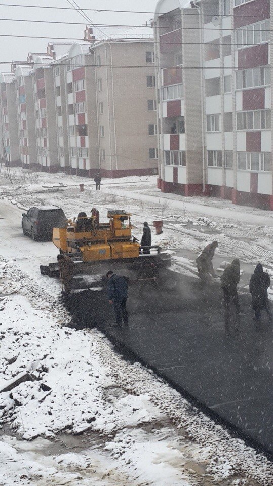 Выпал первый снег? Самое время класть асфальт! (Петропавловск)