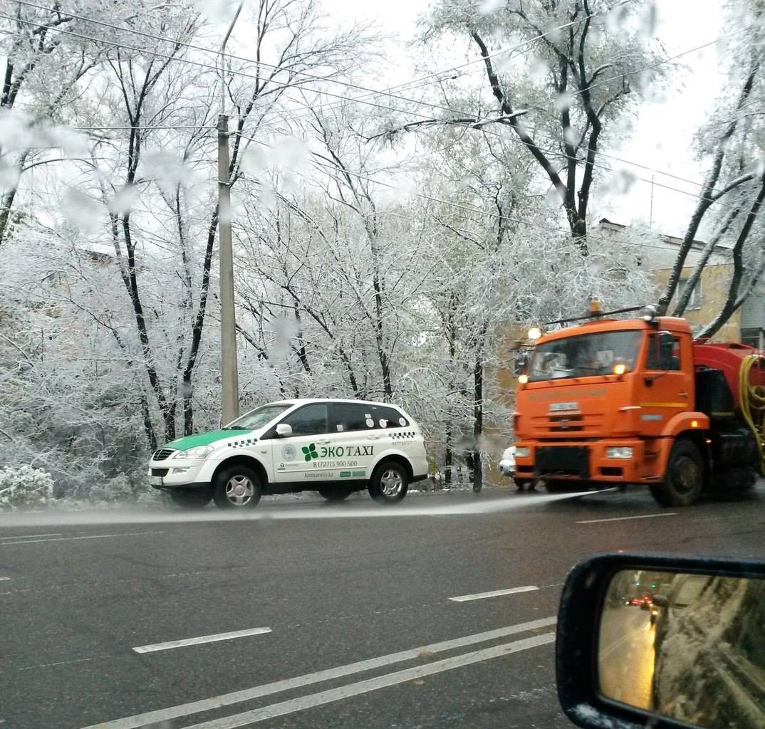 Только в Алматы - при минусовой температуре поливают улицы