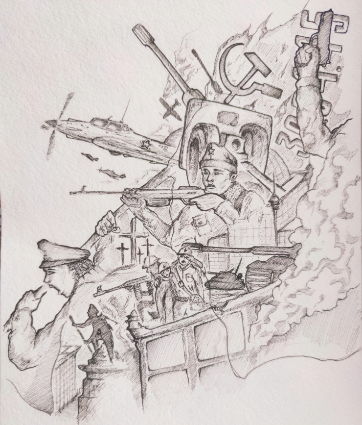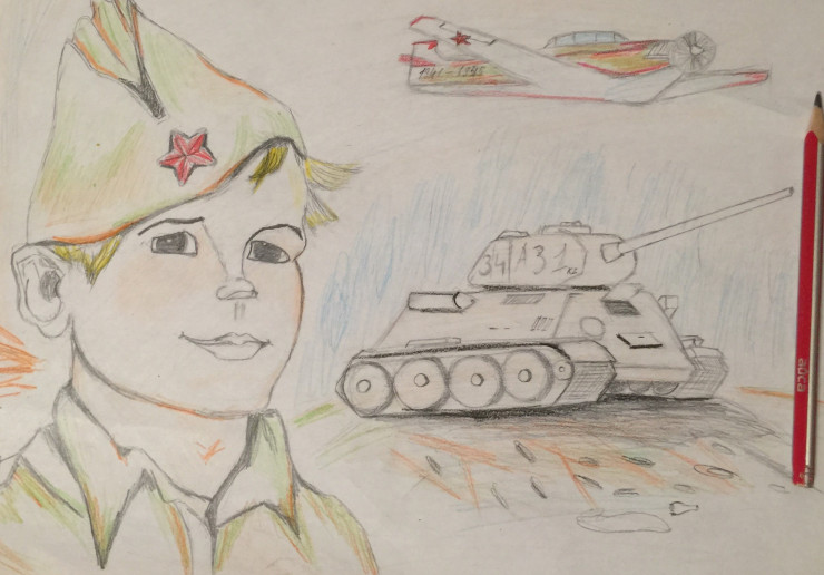 "Мой папа всегда рассказывает нам, своим детям, о том, как воевал наш дедушка, какой путь он проделал и как до своих последних дней помогал людям. Однажды я задумалась о том, как воевали другие солдаты. Я решила узнать об их судьбах, о том, как они переживали горечь потерь и радость Победы. Я начала свой поиск именно с символа самой Победы, точки отсчета мирного неба над головой.
