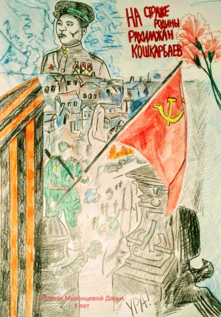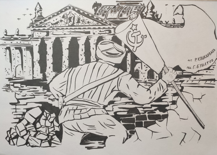 Есть подвиги, которые нельзя предать забвению. 30 апреля 1945 года, за несколько дней до Победы, Рахимжан Кошкарбаев и Григорий Булатов первыми водрузили красное знамя на фасаде здания Рейхстага, за семь часов преодолев под шквальным огнем смертельные 360 метров. TengriMIX делится первыми работами юных художников, поступившими на конкурс "Вечные герои Победы".