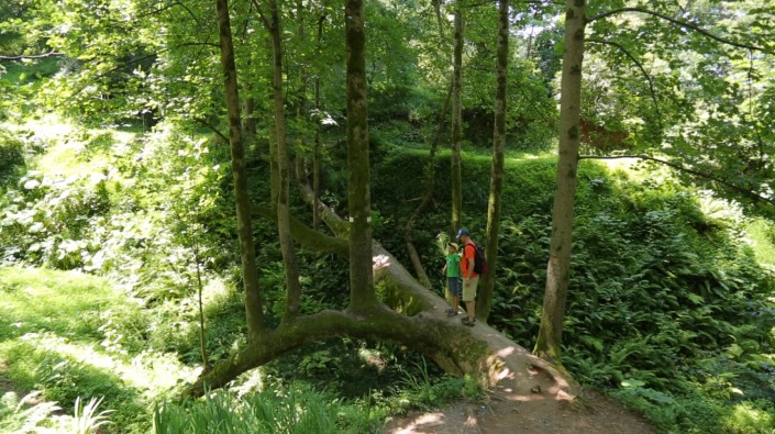 Маленькое чудо. Пару десятков лет назад здесь упало тюльпановое дерево, став эдаким мостиком над оврагом. При этом огромное дерево не высохло - из его ветвей выросли другие деревья.