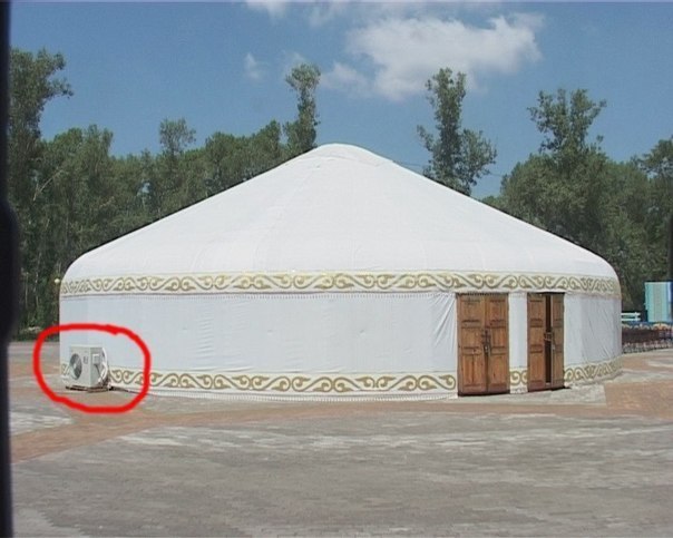 Неправильная юрта. А все потому, что шанырак должен быть открытым, тогда и в кондиционере не будет необходимости.