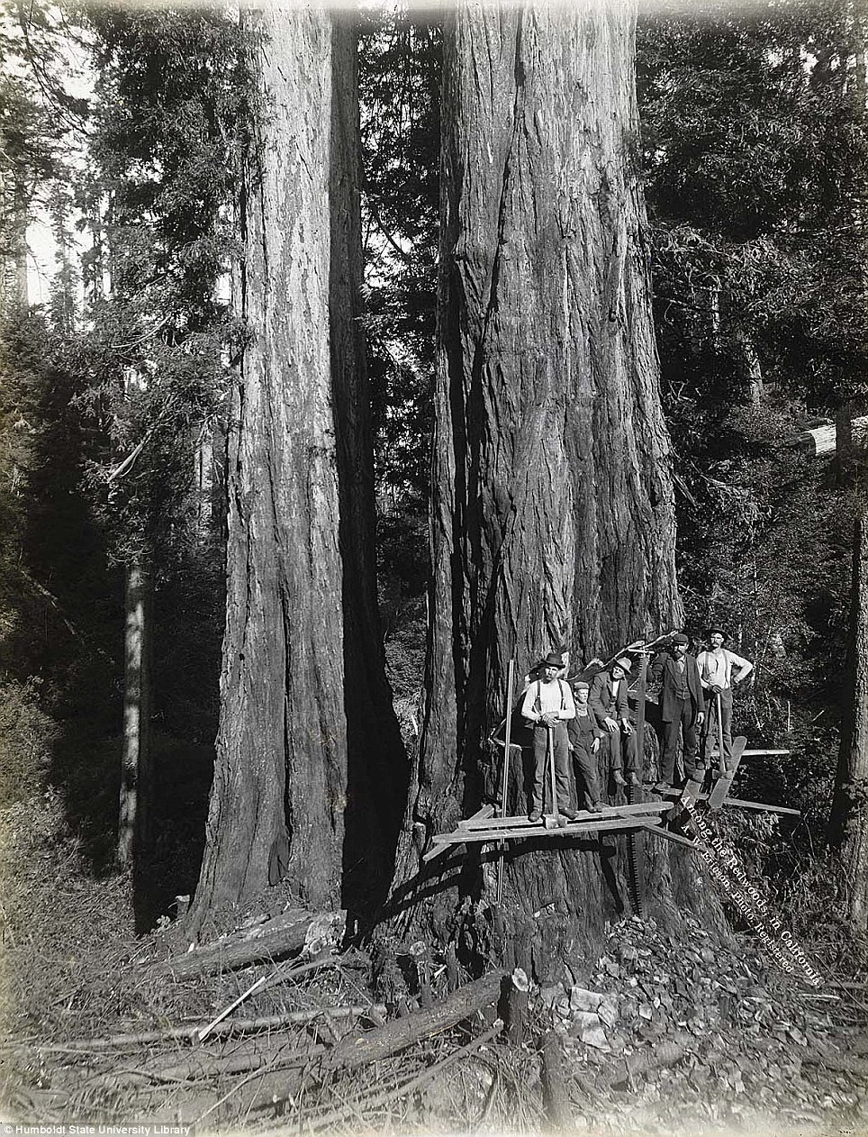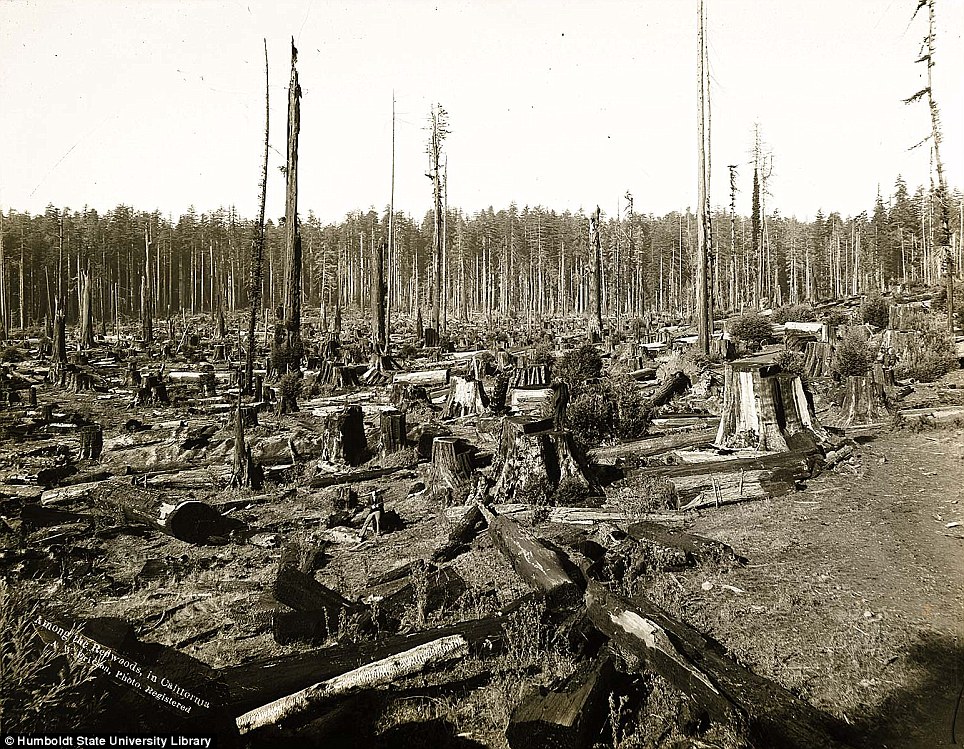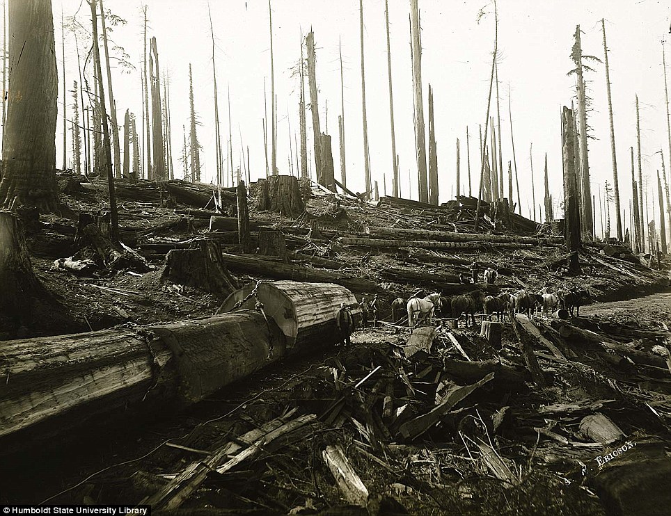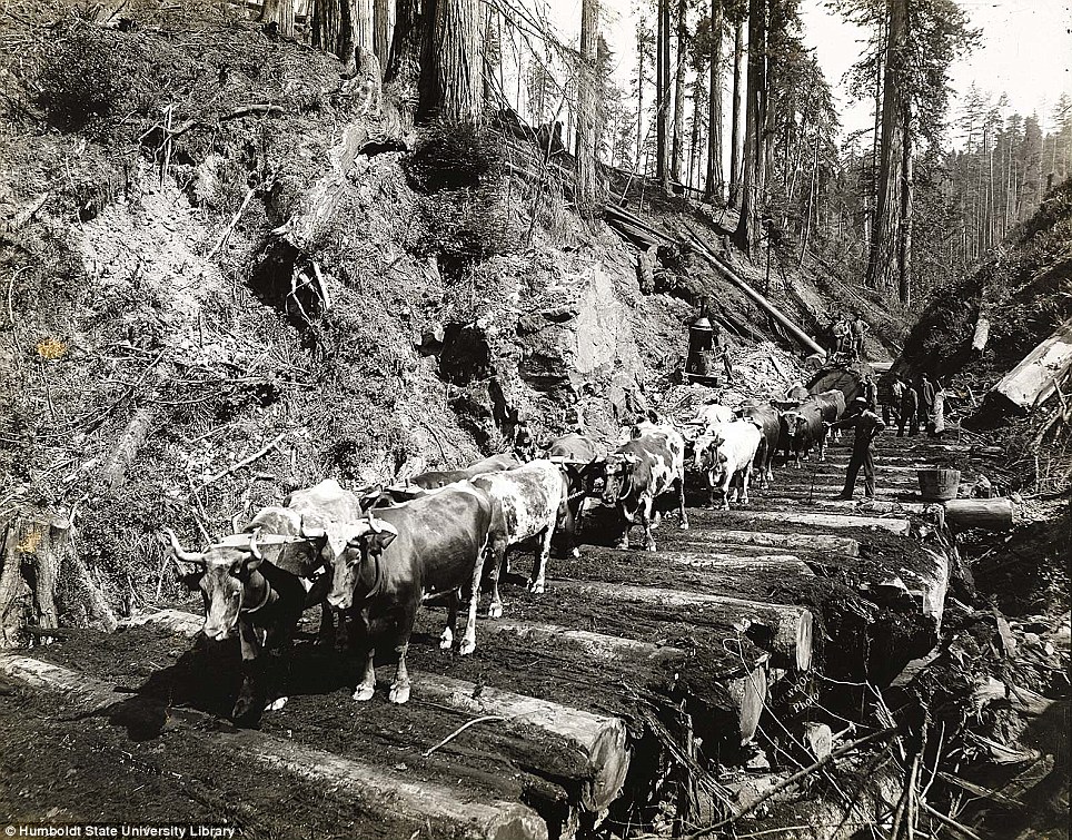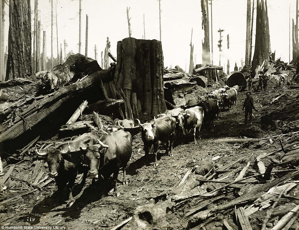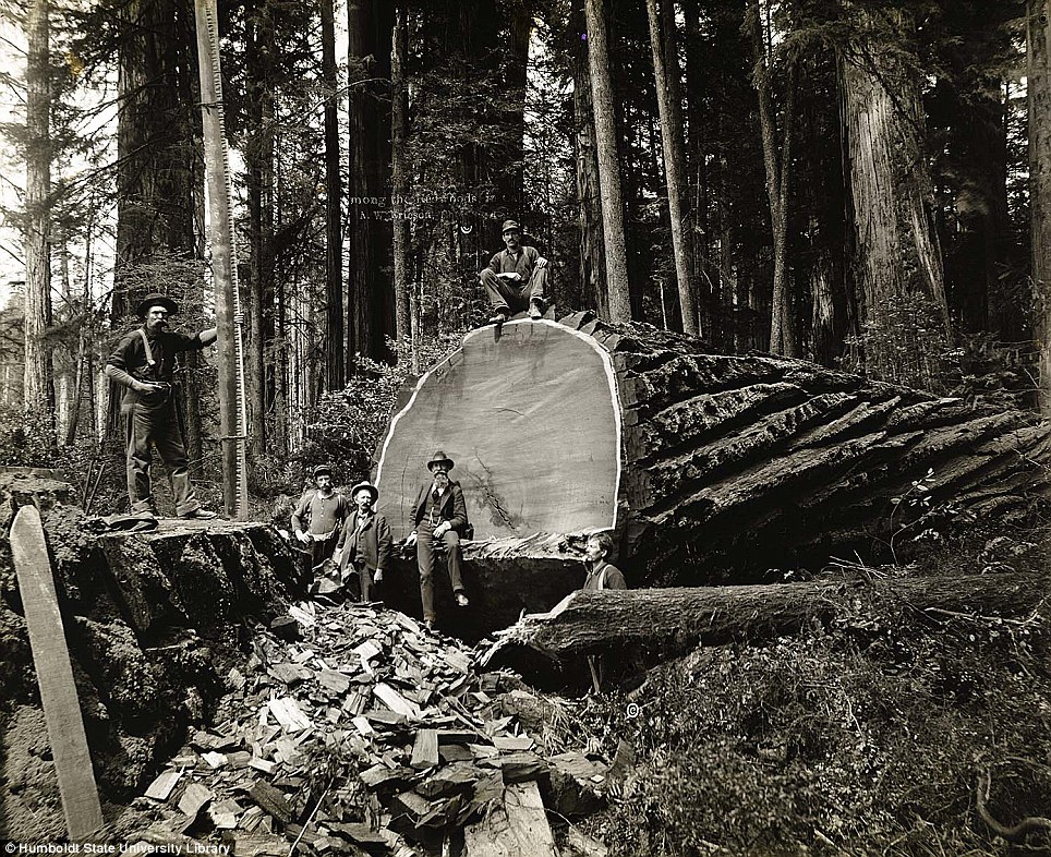 Университет имени Гумбольдта в штате Калифорния представил редкие фотографии, на которых запечатлена работа лесорубов на северо-западе штата, где произрастают гигантские секвойи. Снимки сделаны в 1915 году шведским фотографом Эриксоном (A.W. Ericson). Как видно, в то время лесорубам приходилось валить деревья с помощью нехитрых инструментов, а сборка бревен осуществлялась тягловой силой.