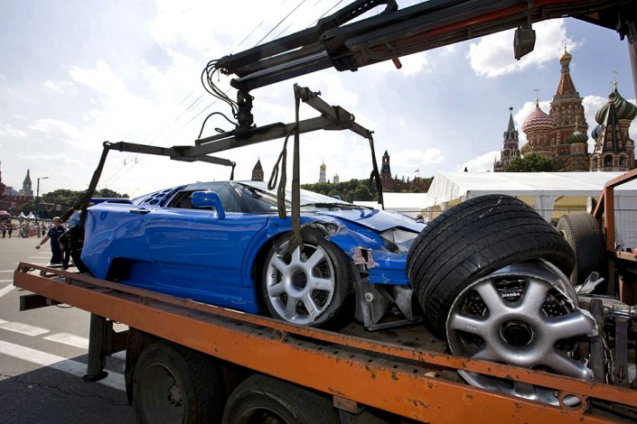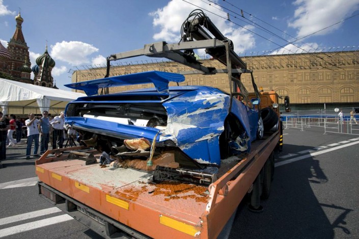 Но не только в Штатах или азиатских странах умеют бить сверхдорогие машины. В 2009-м отличилась и Москва - на мероприятии Bavaria Mosсow City Racing в центре города серьезно пострадал редчайший Bugatti EB110 SS.