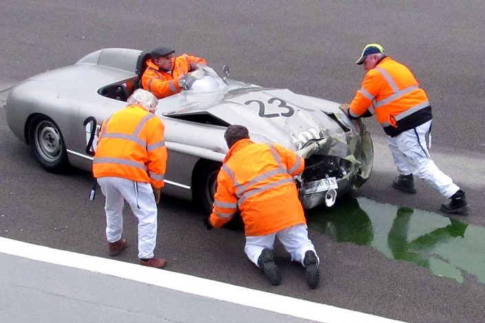 За рулем Mercedes был знаменитый немецкий пилот Йохен Масс. Он не смог объехать резко затормозившего британца Тони Вуда на Lister-Jaguar. Последний едва не загорелся (у него был поврежден топливный бак), а 300 SLS "отделался" разбитым передком.
