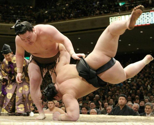 3. Сумо - очень травмоопасный вид спорта. Стартовый контакт - это столкновение двух в среднем 155-килограммовых борцов с совокупной скоростью 50-60 километров в час. По травмам на первом месте идут колени, затем локти, спина и шея, голеностопы и пальцы.