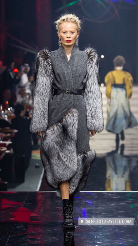 В этом году Айгерим Аяпбергенова участвовала в престижном показе коллекций Ульяны Сергеенко в Дохе, Катар. Она прошла по подиуму с 40 самыми высокооплачиваемыми моделями мира.