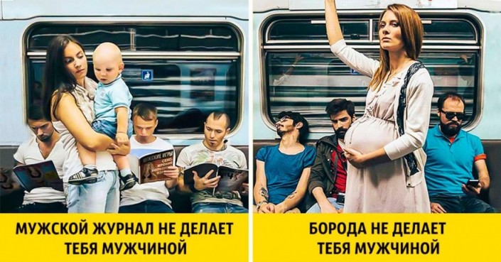 Идея создания этой социальной рекламы пришла в голову петербуржцу Кириллу Коробкину, когда его беременная сестра рассказала, что в метро на протяжении четырех остановок ей никто не уступил место.