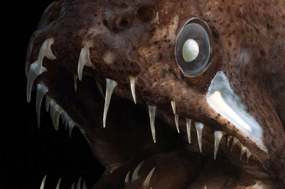 Несмотря на то, что у него такое агрессивно звучащее имя (его зубы пропорционально к телу являются самыми большими среди обитателей океана), Саблезуб довольно маленький и безопасный для людей. Ужасающе выглядящий, но при этом безопасный. Это одно из самых глубоководных животных. Рыбу с чудовищными клыками обнаружили на глубине более 5000 метров, где давление в 500 раз выше, чем на Земле. Человека в таких условиях расплющило бы как блин.