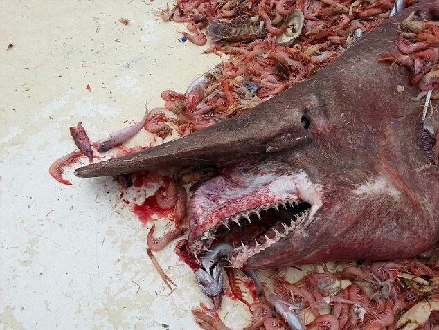 Эта акула живет на глубине в тысячи метров от поверхности воды, но иногда она всплывает. Наверное, чтобы напомнить нам, насколько необычными бывают обитатели океана. Эта редко замечаемая акула населяет глубины Атлантического и Тихого океанов. Ученые считают, что она ловит свою добычу, изгибая тело и делая выпад вперед, как змея при атаке, чтобы проглотить жертву целиком.