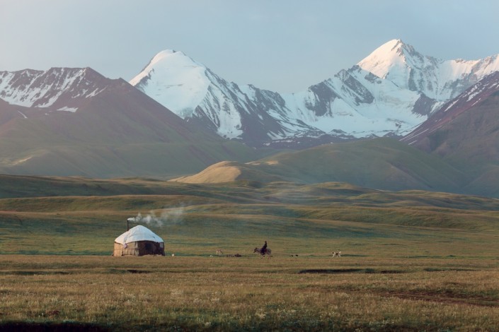 По словам Эрин Бабник, которую называют королевой пейзажной фотографии, композиция кажется очень продуманной. Это особенно выражено в мягком свете снежных вершин, красиво перекликающимся с белесой крышей юрты. А движение дыма в направлении человека и пес с другой стороны обеспечивают момент тонкого натяжения.