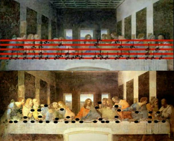 В 2007 году итальянский музыкант и специалист по вычислительной технике Джованни Мария Пала, заявил, что обнаружил музыкальные ноты в знаменитой картине кисти да Винчи "Тайная вечеря". По его словам, если нарисовать 5 линий нотного стана вдоль всей картины, руки Христа, руки его апостолов и буханки хлеба на столе изображают музыкальные ноты, которые можно понять, читая справа налево.