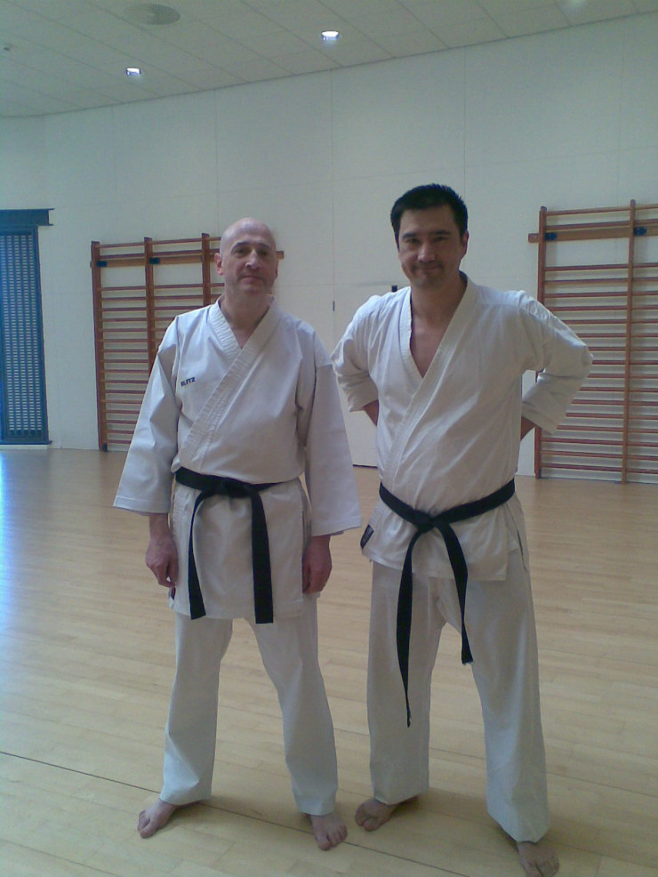 Но ученого пригласили в Великобританию. В британском университете его быстро заметили и пригласили выступать за сборную университета. Его тренером оказался Ийен Ренни (Iain Rennie) - глава Шотландской ассоциации каратэ. Он без особых вопросов принял парня и аттестовал на черный пояс (шотокан каратэ, WKF).