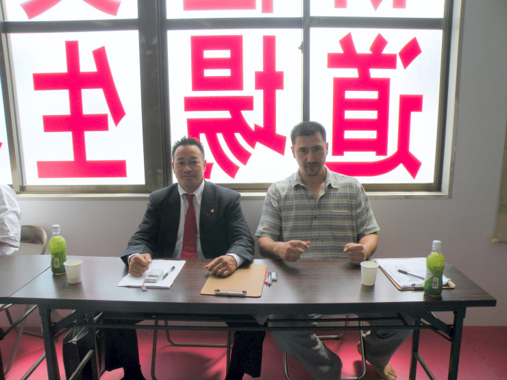 На экзаменах с директором шин-кекушинкай каратэ Кенжи Мидори (Kenji Midori) в Фукуока, Япония