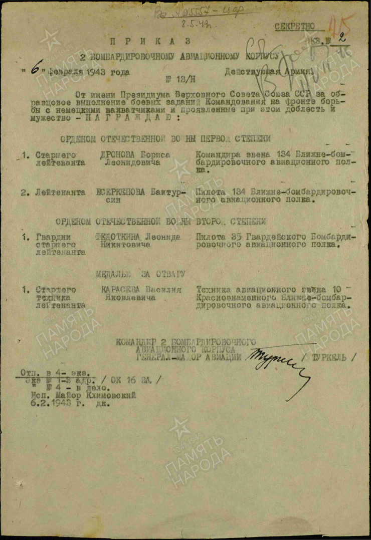 Наградной список. Под номером 2 - Байтурсун Есеркепов. © pamyat-naroda.ru