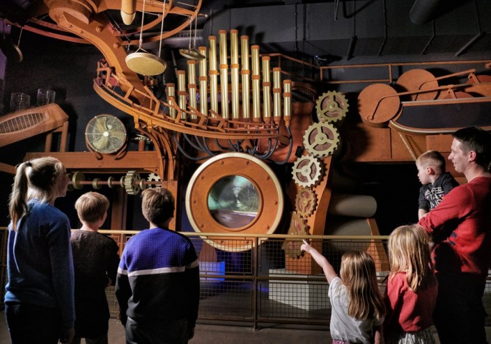 Один из залов стилизован под ресторан. Посетители усаживаются за столы, и на тарелках транслируется короткий мультфильм о том, как делается шоколадный десерт с мороженым. Во время первого просмотра дети безуспешно пытались оторвать приклеенные тарелки-экраны. Потом, проигнорировав правила, они хитро проникли в зал на второй просмотр, но тарелки так и не поддались. А к нам так никто и не пришел, чтобы сказать "ведите себя прилично, ничего не трогайте".