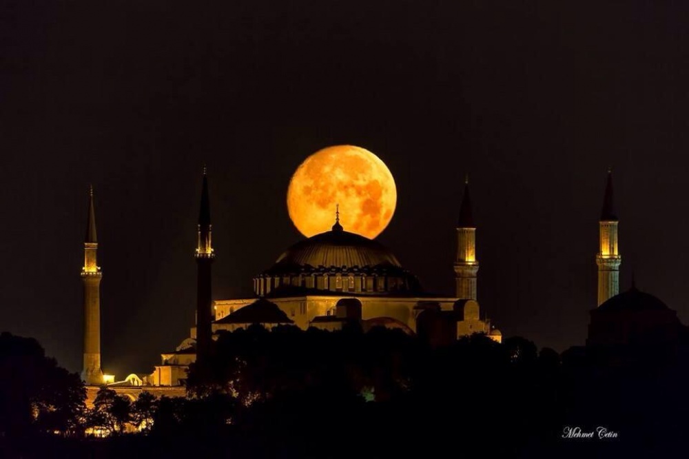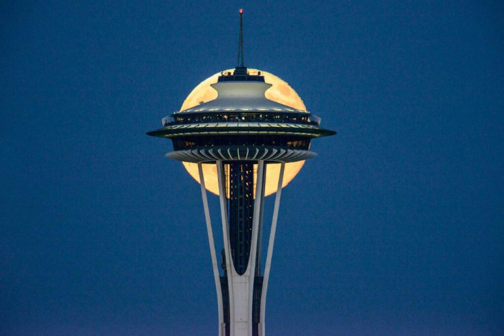 Суперлуние-2014 над гаванью Ванкувера (© David McNew).