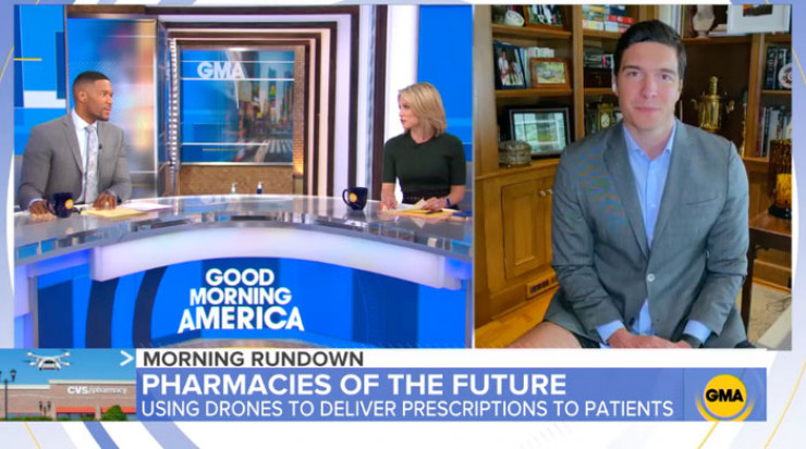 Забавная ситуация произошла с сотрудником американского телеканала АВС (American Broadcasting Company). К прямому эфиру программы "Доброе утро, Америка" (Good Morning America) Уилл Рив подготовился, как ему показалось, достойно. Ведущий из своего дома предстал перед зрителями в рубашке и пиджаке. Корреспондент поделился новостью про аптеки, которые стали использовать беспилотники для доставки лекарств пациентам.