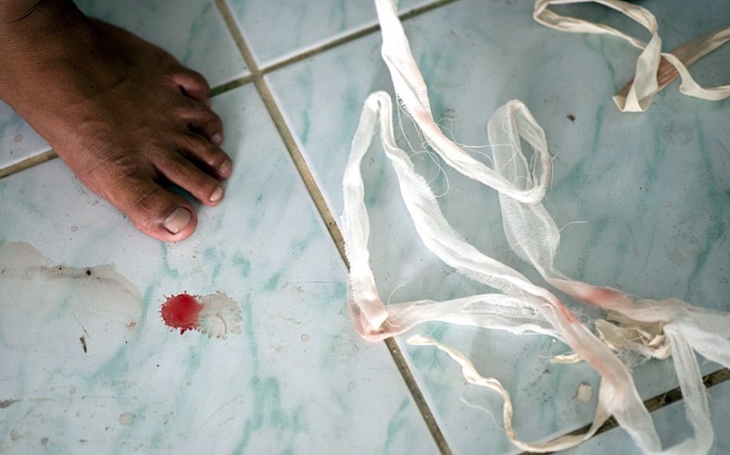 Кровь на полу после боя.