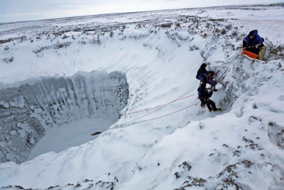 Спуститься в воронку летом у исследователей не получалось из-за постоянного обрушения грунта. В этот раз участники экспедиции спустились на глубину в 200 метров при порывах сильного ветра, скорость которого достигала 20 метров в секунду.