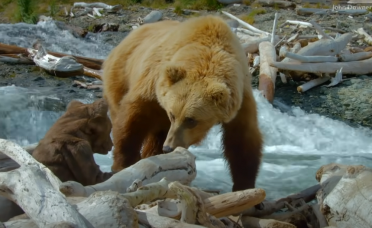 Медведи гризли обычно ведут одиночный образ жизни. Однако хищники собираются вместе во время рыбалки, когда сотни тысяч лососей мигрируют по рекам, чтобы насладиться этой трапезой. Главными героями видео стало семейство медведицы и ее медвежат, которые спешили занять лучшие позиции для ловли рыбы.