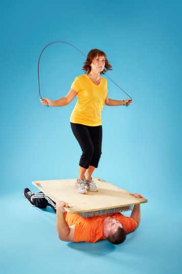Рекорд самого большого числа прыжков на скакалке, совершенных на доске с гвоздями, принадлежит Эми и Джону Бруни.