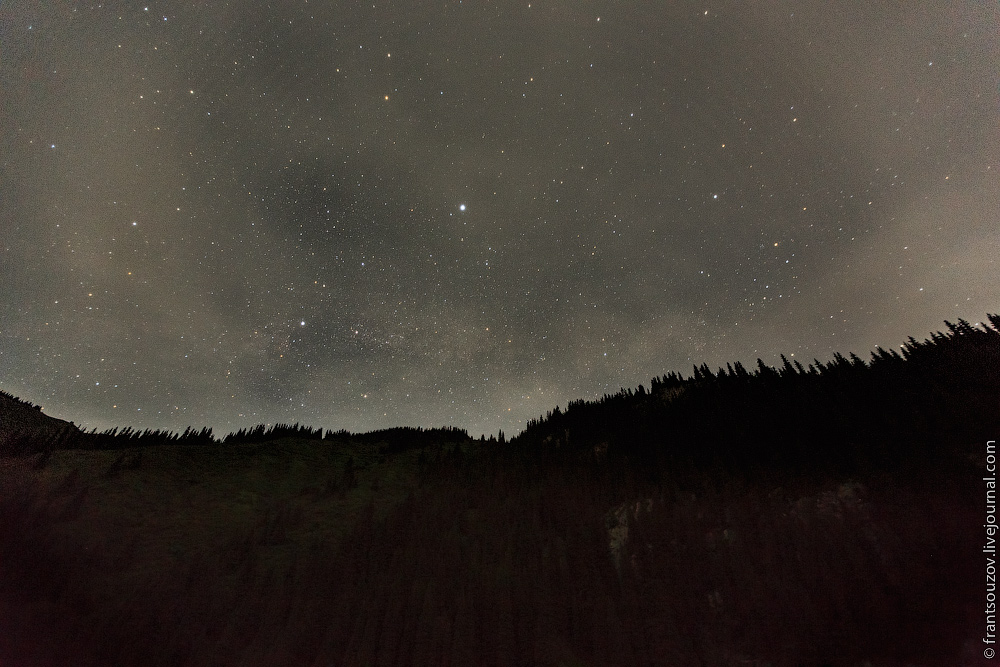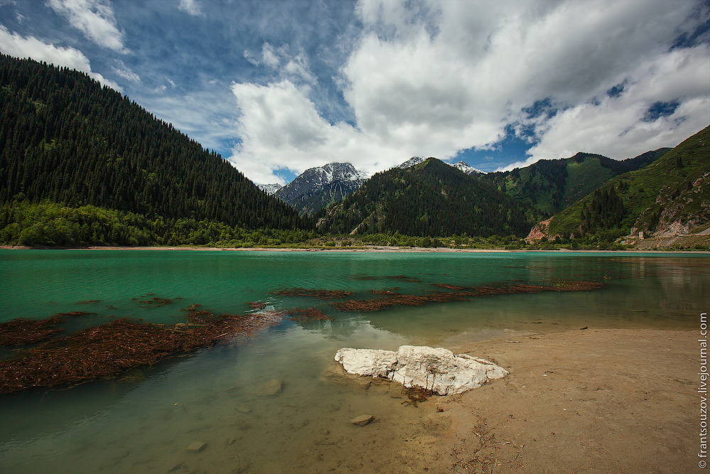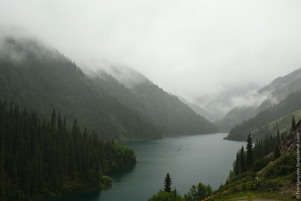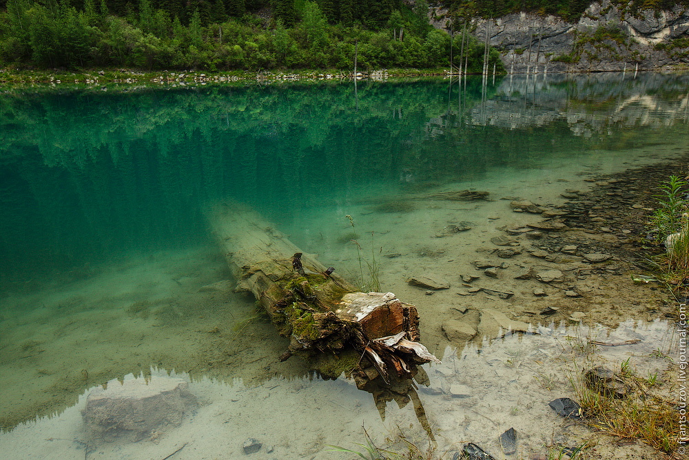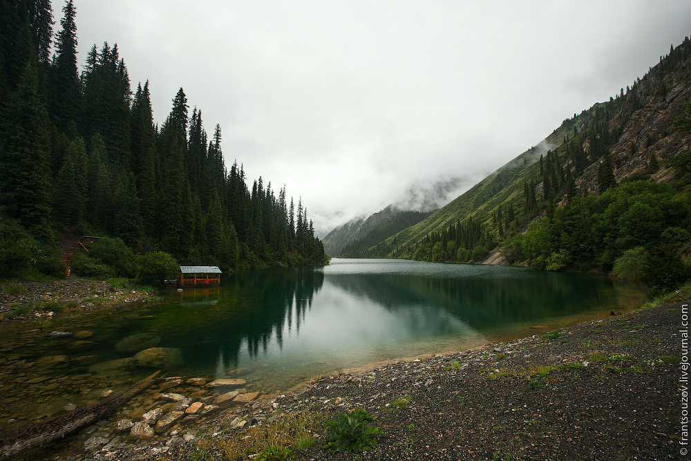 "Горное озеро на высоте 2000 метров, чистейшая вода нереального бирюзового цвета и мертвый лес, стоящий среди нее, - когда-то здесь росли деревья. Вдалеке плавает утка и орет на всю округу, а эхо от ее кряканья разносится в горах... Это утро просто взорвало мой мозг", - пишет Французов после посещения озера Каинды.