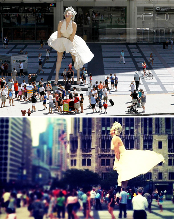 Восьмиметровая инсталляция Мэрилин Монро Сьюарда Джонсона во всем известной позе из фильма "Зуд седьмого года"