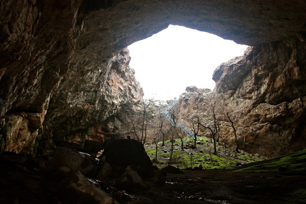 Подземная пещера в Южно-Казахстанской области, которую также называют "Акмешит Аулиенской". Это очень удивительное место. На дне пещеры растут огромные платаны и зеленая травка. Внутри летают птицы. К тому же, в "Акмешит" в любое время года практически одна и та же температура.
