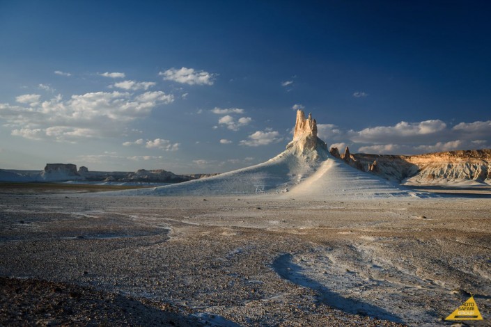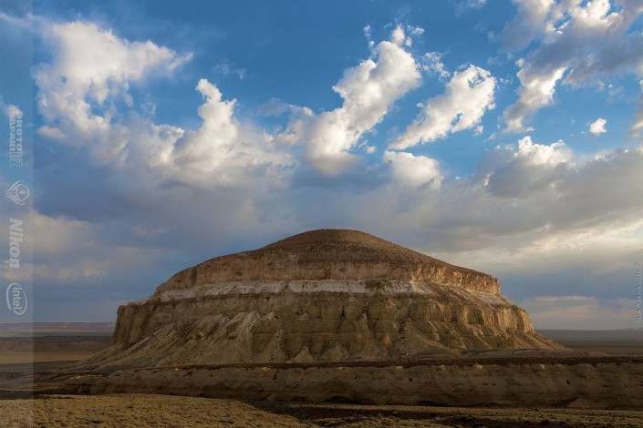 Плато Устюрт - идеальная пустынная равнина, расположенная на западе Казахстана, между Аральским и Каспийским морями. Плато подобно Большому Барьерному Рифу хорошо видно из космоса. Суммарная протяженность цепи устюртских чинков составляет несколько сотен километров.