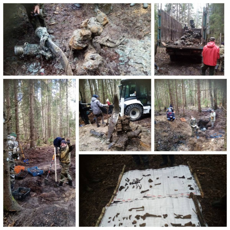 Отмечается, что работа осложнялась постоянно поступающей в раскоп водой, но к середине дня из трехметровой воронки были выкопаны части двигателей, лопасти винтов, шасси, приборы и многочисленные куски обшивки летательного аппарата. В земле также были обнаружены останки военных. После проведенных раскопок место крушения ИЛ-4 было облагорожено.