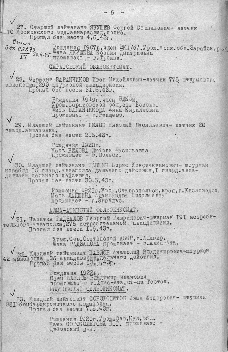 По документам Анатолий числится как без вести пропавший со дня крушения бомбардировщика, 13 июня, не вернувшись с боевого задания.