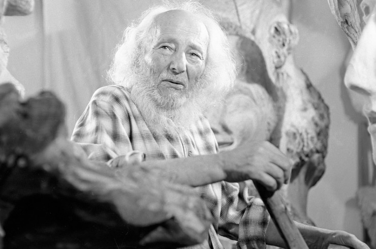 На экране коренастый, полутораметрового роста, 96-летний, с огромной седой бородой старичок, похожий на Саваофа или рождественского гнома, деловито расхаживал среди огромных деревянных и гипсовых скульптур, работал по ним резцом, и глаза его блестели живым, молодым озорством. А диктор рассказывал в это время, что Исаак Иткинд был в 30-е годы знаменит вровень с Шагалом, Эрьзей и Коненковым и что скульптуры Иткинда стоят в музеях Франции, Западной Германии, США и... в кладовых-запасниках Русского музея в Ленинграде и Пушкинского музея в Москве.