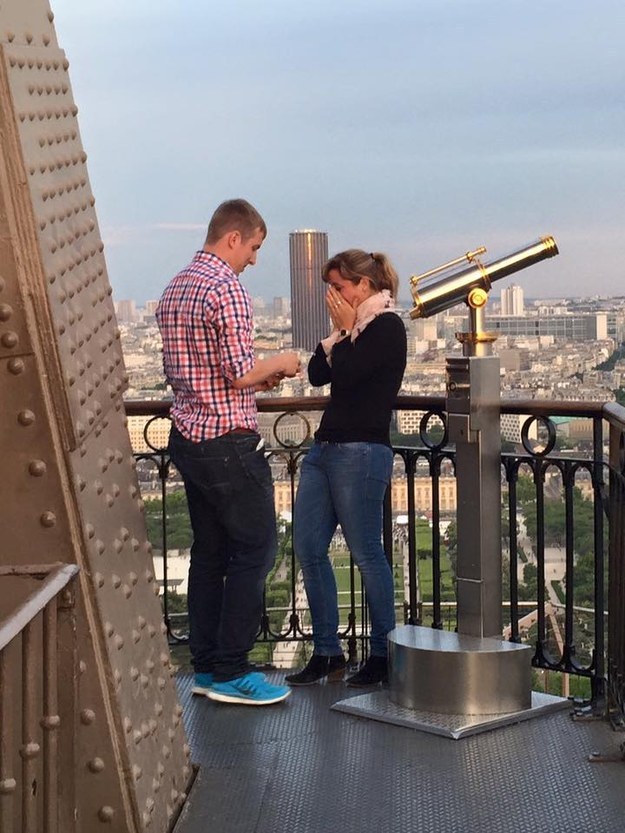 Американка Джен Херд Бон недавно была в Париже и случайно засняла на Эйфелевой башне момент, как парень делал предложение своей возлюбленной.