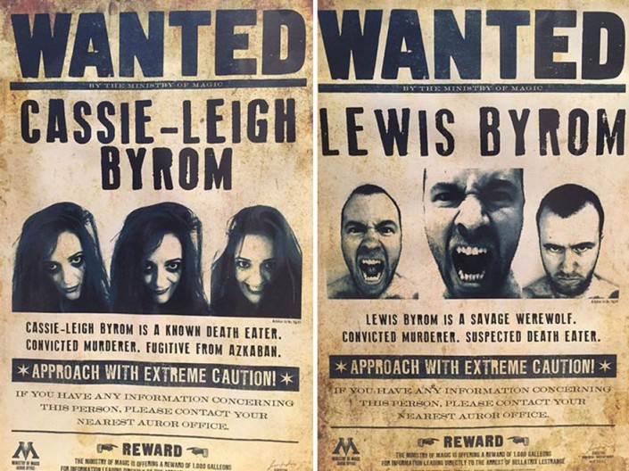 Пара планировала торжество более года, чтобы в деталях воссоздать атмосферу, в которой жил их любимый герой. Лица молодоженов красовались на плакатах из Министерства магии. Каждый из 130 гостей получил волшебную палочку, а подружки невесты держали в руках бумажные букеты, сделанные из 20 разрезанных экземпляров книг.