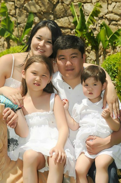 Серик Акишев с женой Ольгой Болдовской и детьми