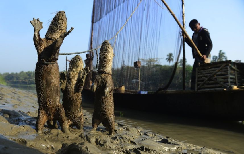 Выдры помогают рыбакам в Бангладеш ловить рыбу, собщает ФотоТелеграф.