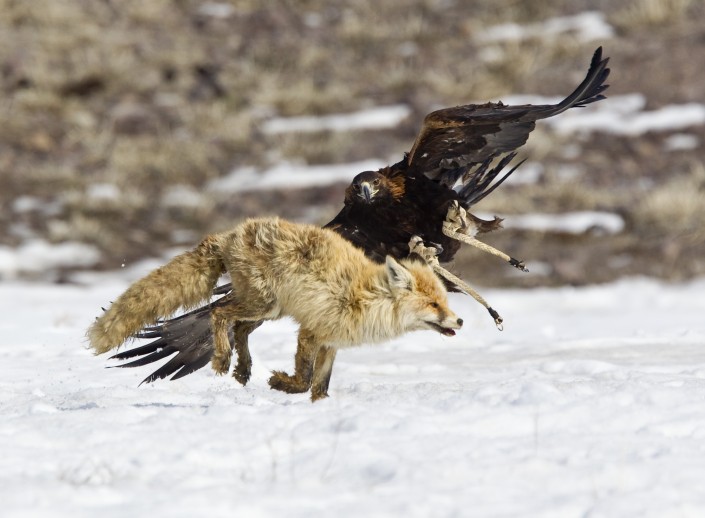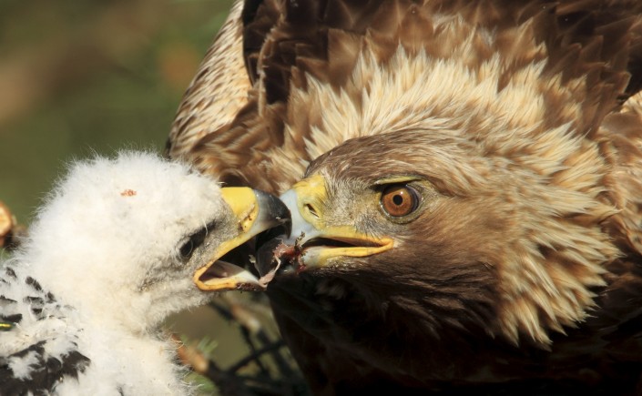 Но такое поведение заложено в беркуте природой. Он - настоящий охотник и "машина смерти". Удивительно, но целых 200 видов млекопитающих и пернатых входят в список рациона этой птицы. Иногда жертвой беркута становятся и ястребы, истории также известен случай, когда от него пострадал медвежонок. Дело в том, что добычу хищник видит на расстоянии до четырех километров, а его шея может крутиться на 270 градусов, оптимизируя обзор. В своих когтях беркут легко утащит до 20 килограммов мяса и нисколько не устанет, хотя сам весит гораздо меньше. Для поддержания сил птице необходимо употреблять до 1,5 килограмма мяса в сутки, однако, если возникнет критическая ситуация, то она может "затянуть поясок" на срок до пяти недель.