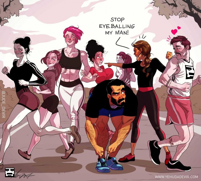 Иегуда Девир из Тель-Авива создает чудесные комиксы о ежедневных домашних приключениях со своей супругой Майей. Каждый день иллюстратор черпает вдохновение в повседневных ситуациях и переносит их на бумагу.