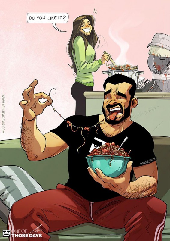 Счастье в мелочах. Нужно только уметь его распознать. Порой, зарываясь в рутину, мы не замечаем всех прелестей семейной жизни. А они, как правило, бывают довольно забавными. Израильский художник не только знает, как наслаждаться мелочами, но и фиксирует их на бумаге. TengriMIX неоднократно уже делился с вами его правдивыми иллюстрациями. Предлагаем оценить свежую порцию комиксов.