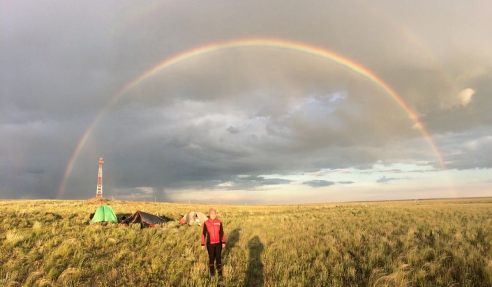 Кстати, во время путешествий за плечами у Акмарал, конечно, рюкзак со всем необходимым: пауэрбанк, телефон, насос для шин, запасные части, теплая одежда, спальный мешок, палатка. Она также возит с собой горелку и продукты.