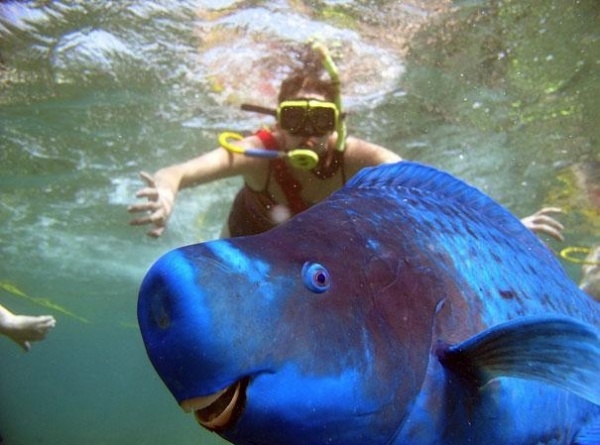 Синяя рыба-попугай