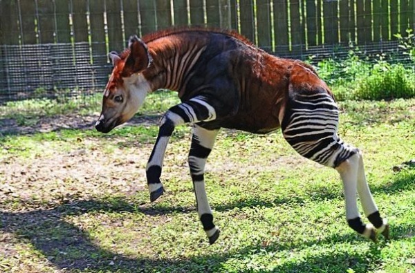 Несмотря на то, что по телосложению и окрасу окапи больше напоминают лошадей, они относятся к семейству жирафовых.