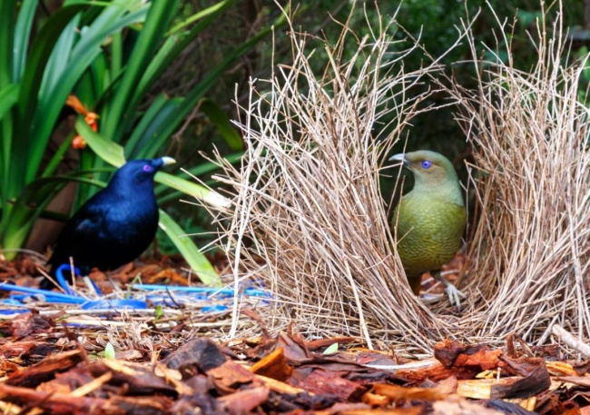 Эта птичка, пожалуй, самый большой романтик. Для будущей любимой шалашник строит домик и старательно украшает различными блестящими и цветными вещицами, какие ему только удастся найти. Как настоящий творец, шалашник мечется в поисках ракушек, ягод, утаскивает брошенные людьми яркие предметы, предпочитая насыщенный синий. Разве сможет устоять женщина перед такими ухаживаниями?