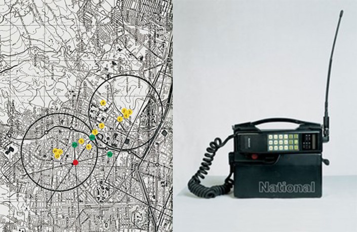 Слева: карта перехвата звонков Эскобара, 1993 год, справа: личный телефон Эскобара.