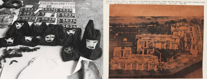 Поддельные номера и маски похитителей (слева). Дома во Флориде, купленные Эскобаром в 1981 году (справа).