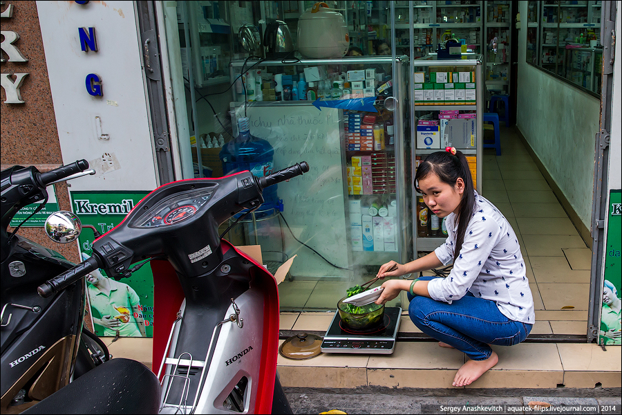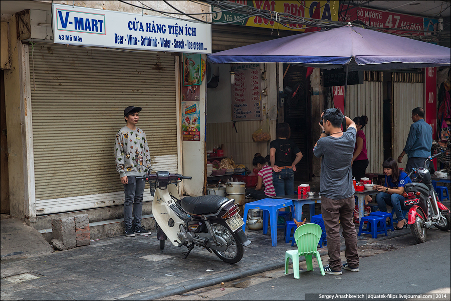 Глядя на обычную жизнь ханойской улицы, кто-то скажет: "Кошмар и ужас", кто-то скажет: "Нам грех жаловать на свою жизнь", а кто-то может быть найдет что-то близкое и даже родное. Да, эта жизнь значительным образом отличается от той жизни, которую мы привыкли видеть на улицах своих городов - вьетнамцы все делают на улице - работают, торгуют, отдыхают, занимаются бытовыми делами и даже едят... Но это их жизнь. Такая, какая есть. И они в ней счастливы.