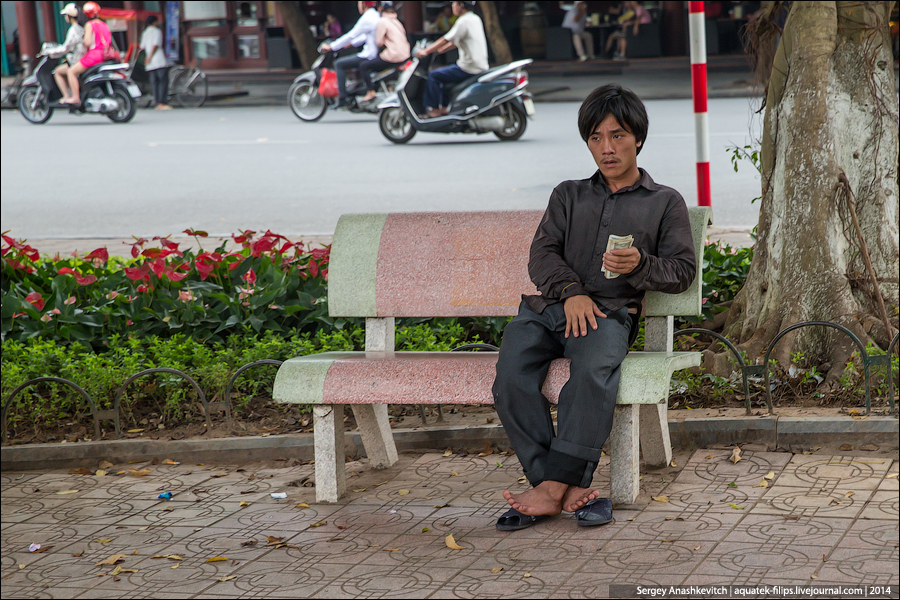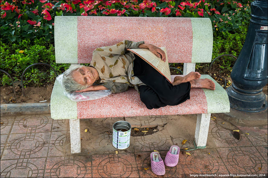 Довольно часто на улицах Ханоя можно встретить спящих на скамейках или просто на земле людей. Причем, в самое разное время суток.