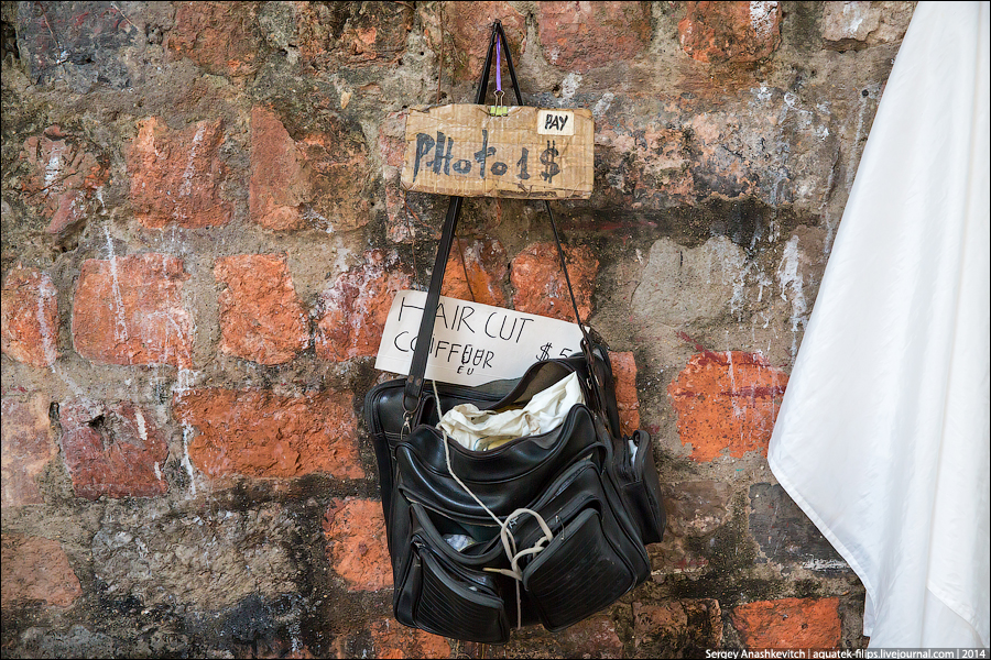 Однодолларовый салон. Здесь все совершенно просто - прямо на улице ставится стул, на любую стену вешается зеркало и все - парикмахерская готова!